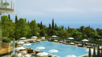 This luxurious 191-sqm three-room suite, located on the top floors of the hotel, comes appointed with warm, wood panelling and parquet floors. Guests will enjoy a private kitchen, separate living room, dining room for up to 10 people, home cinema, one king bed topped with cotton linens and master bathroom featuring a marble tub and a large rain and steam shower. Floor-to-ceiling windows and a large terrace grant panoramic views of the Black Sea. Includes Regency Club access. Includes Regency Club services, such as refreshments during the day and cocktails in the evening. Butler service and connecting with Sea View King or Twin rooms available upon request.