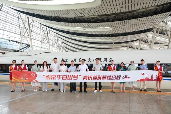 7月23日上午,由南京牛首山文化旅游区冠名的“牛首山号”高铁品牌专列首发仪式在北京举行。由此开启了牛首山品牌接轨高铁时代的全新旅程,全面展示牛首山品牌新貌,未来环渤海经济圈距离牛首山休闲度假只有一张“牛首山号”车票的距离。 乘坐着这列全品牌包装的“牛首山号”