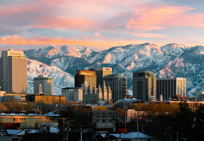 1847年,摩门教在美国各地受到迫害与驱逐。领袖杨百翰 (Brigham Young)带领教徒四处迁徙,经过艰苦的长途跋涉,翻过重重雪山,终于来到一座雪山环绕的山谷。他们登上山顶,眺望着犹他州盐湖谷这片广袤的土地,不禁发出感叹:This is the place——这正是我们的梦想之