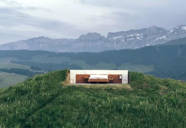 如今的酒店越来越豪华, 但也总有人喜欢标新立异。 瑞士人就搞了一个酒店, 客房里只有一张床,连墙和天花都没有。 甚至官网的slogan也一样同样极简 唯一的星