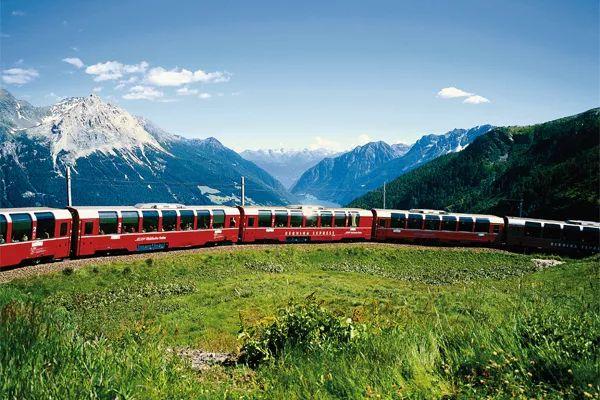 穿越阿尔卑斯山的雄伟壮阔, 沐浴日内瓦的午后阳光的岁月静好, 掠影圣莫里茨绝美田园风光时的心旷神怡…… 瑞士那些令人无限向往的美景,都是它的途径。 不得不承认,瑞士伯尔尼纳快车 被嫉妒了! 这趟从格劳宾登州首府库尔开出的