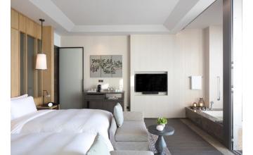 豪华海景泳池套房在低调奢华的环境中散发出优雅宅邸的韵味。套房采用现代特色度假胜地灵感的高雅细节装饰,可以360度俯瞰南中国海风光。套房拥有宽敞的居住空间,设有私密的卧室,步入式衣帽间,客用浴室以及配备桌椅的独立起居室,浴室设特大浴缸以及双盥洗池等,诸多细节重新定义奢华生活。专属阳台独立泳池旁设有太阳椅,可在午后安憩午睡,或在晚上观星。豪华海景泳池套房位于酒店2层和6层。