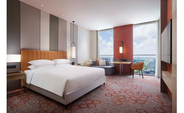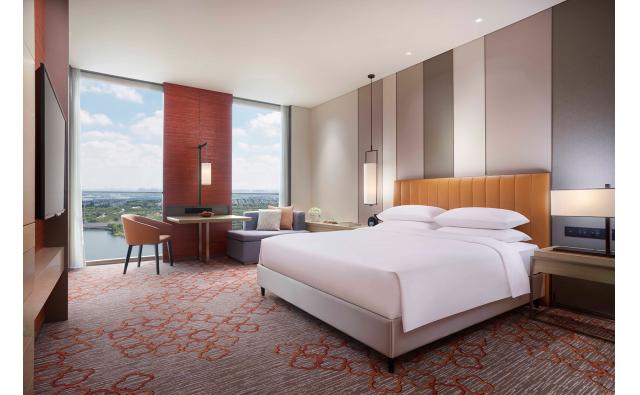 预定客房面积为40平方米,可欣赏到整个远香湖美景。房内配有豪华特大双人床,超大办公桌,分离式大理石淋浴间及浴缸。温馨惬意的室内设计给您宾至如归的住宿体验,客房内完备的现代化设施,满足您各类商旅休闲的住宿需求。