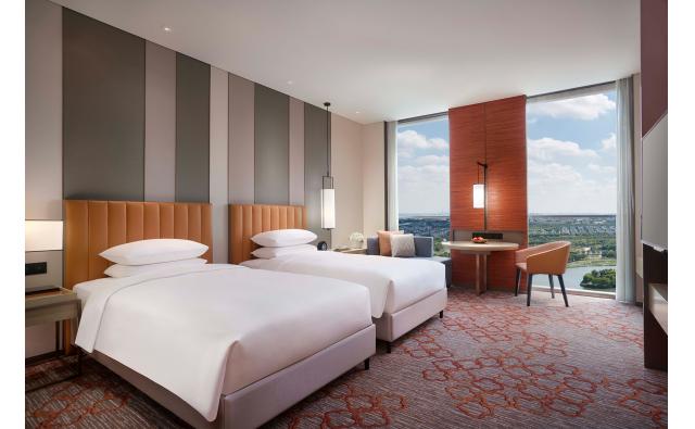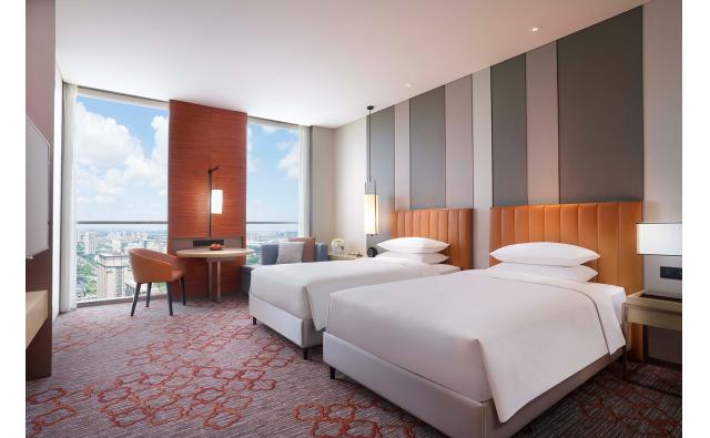 预定客房面积为40平方米,可欣赏到整个远香湖美景。房内配有两张舒适单人床,超大办公桌,分离式大理石淋浴间及浴缸。温馨惬意的室内设计给您宾至如归的住宿体验,客房内完备的现代化设施,满足您各类商旅休闲的住宿需求。