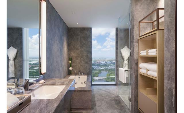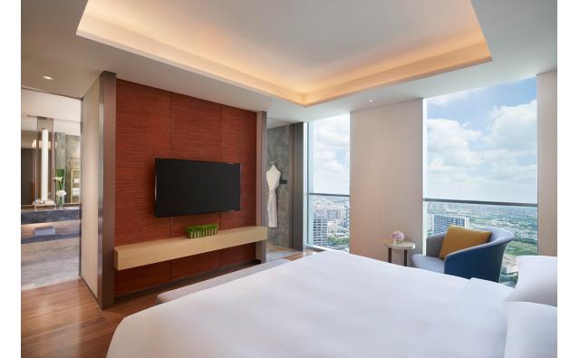 40平方米宽敞舒适客房,可透过落地窗俯瞰嘉定新城景致。房内配有豪华特大双人床,超大办公桌,分离式大理石淋浴间及浴缸。温馨惬意的室内设计给您宾至如归的住宿体验,客房内完备的现代化设施,满足您各类商旅休闲的住宿需求。