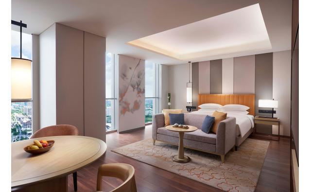 预定100平方米的凯悦套房内设宽敞独立的活动空间让您尊享贵宾般待遇。房间更分别配有客厅区域和卧室让您享受在家般的舒适自在。 主卧室配有舒适的豪华大床和分离式大理石沐浴间及淋浴室。房内配有65英寸平板电视,咖啡机及免费高速网络等现代化设施,并可尊享每日嘉宾轩早餐及全天所供应的各类饮品小吃。