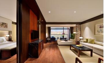 南临阁尊享房全空调覆盖,面积为60平方米,配备豪华大床或双床,配有现代化的设施,包括国际长途电话和语音邮件,宽带上网,电脑/传真数据端口,有线电视频道,迷你吧,咖啡/茶设施,室内保险箱和大理石瓷砖浴室,浴袍,擦鞋服务。