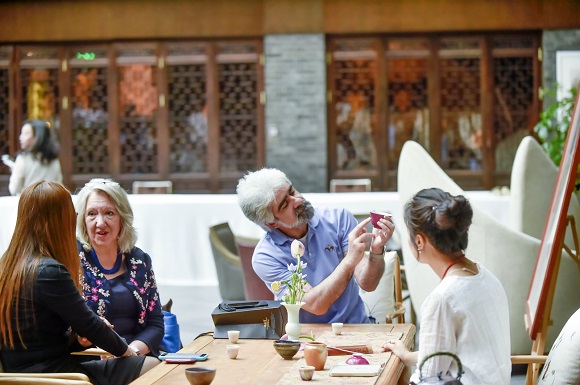 活动在一片悠扬的民乐声中拉开序幕,服务员身着典雅大气的旗袍、踩着音乐节拍缓缓而出,端上酒店御之点为此次活动精心准备的依照古法制作的茶点。来自德意志联邦共和国驻成都总领事馆领事Ingrid Delfs,德国艺术家Armen Gevorgyan ,国画大师郭汝愚先生和山水画大家叶瑞琨先生等不同领域的近八十位嘉宾齐聚一堂,共同见证了这个意义非凡的艺术盛典。