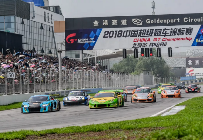 7月7日,2018 China GT中国超级跑车锦标赛第五回合决赛在北京激情上演。北京奥迪金港汽车公园长2.39公里,拥有多达12个弯道,密集多弯的布局极具挑战性。周六的北京有雨点飘落,但京城车迷的热情依然不减,整个看台座无虚席。 在